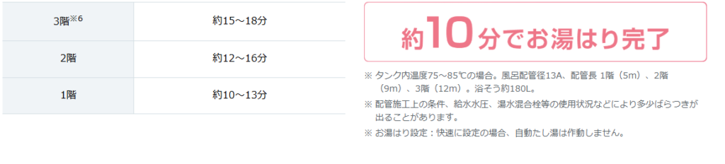 お湯張りにも差が出ますのですぐにお風呂を入りたい時には便利です。